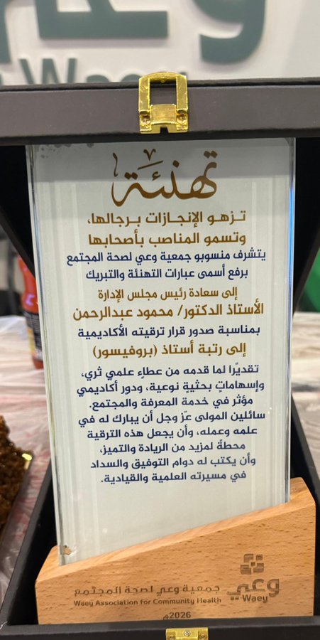 باسم منسوبي جمعية وعي لصحة المجتمع، يسرنا أن نتقدم بأصدق التهاني والتبريكات إلى سعادة الأستاذ الدكتور / محمود عبدالرحمن محمود (@communitymddr